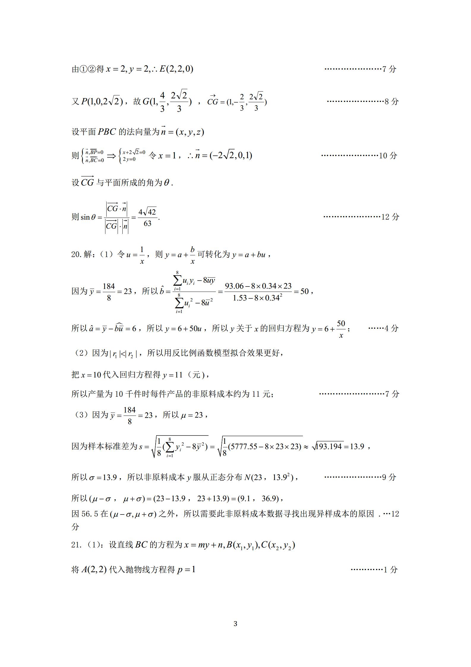 华大新高考联盟2023届高三3月教学质量测评数学试卷(扫描版含答案)