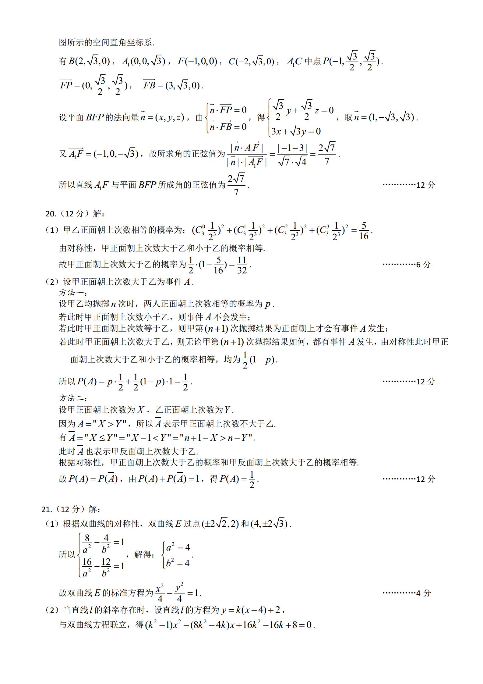 武汉市2023届高中毕业生四月调考数学试卷(扫描版)