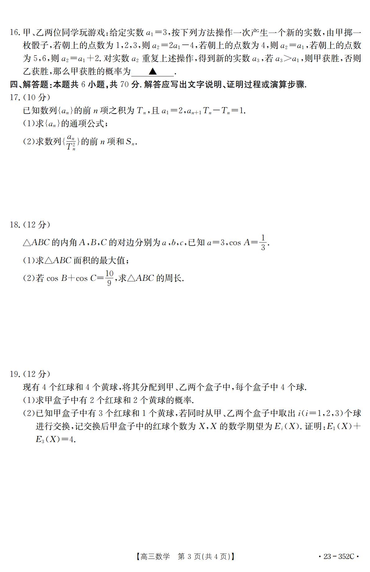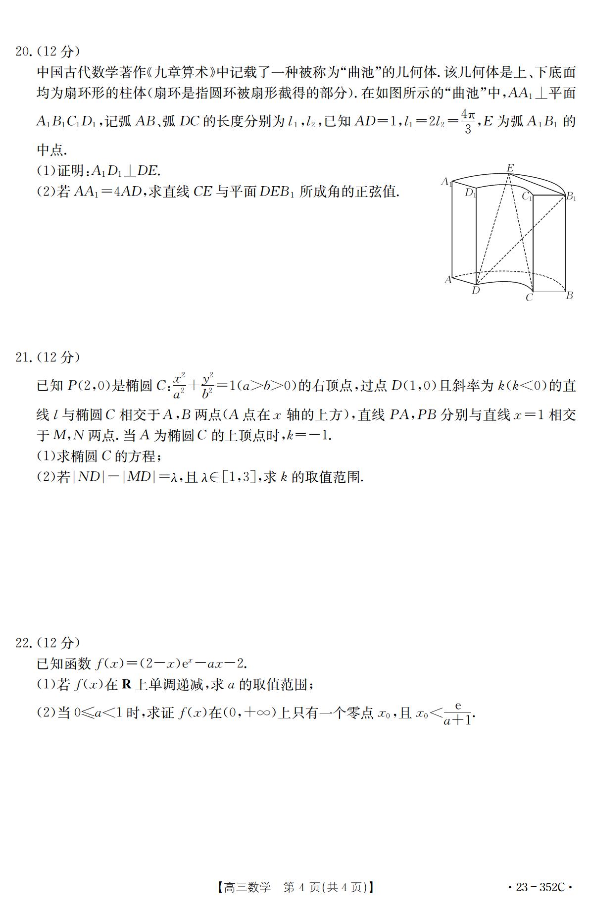 湖北省十堰市2022-2023学年高三下学期4月调研考试数学试题(扫描版含答案)