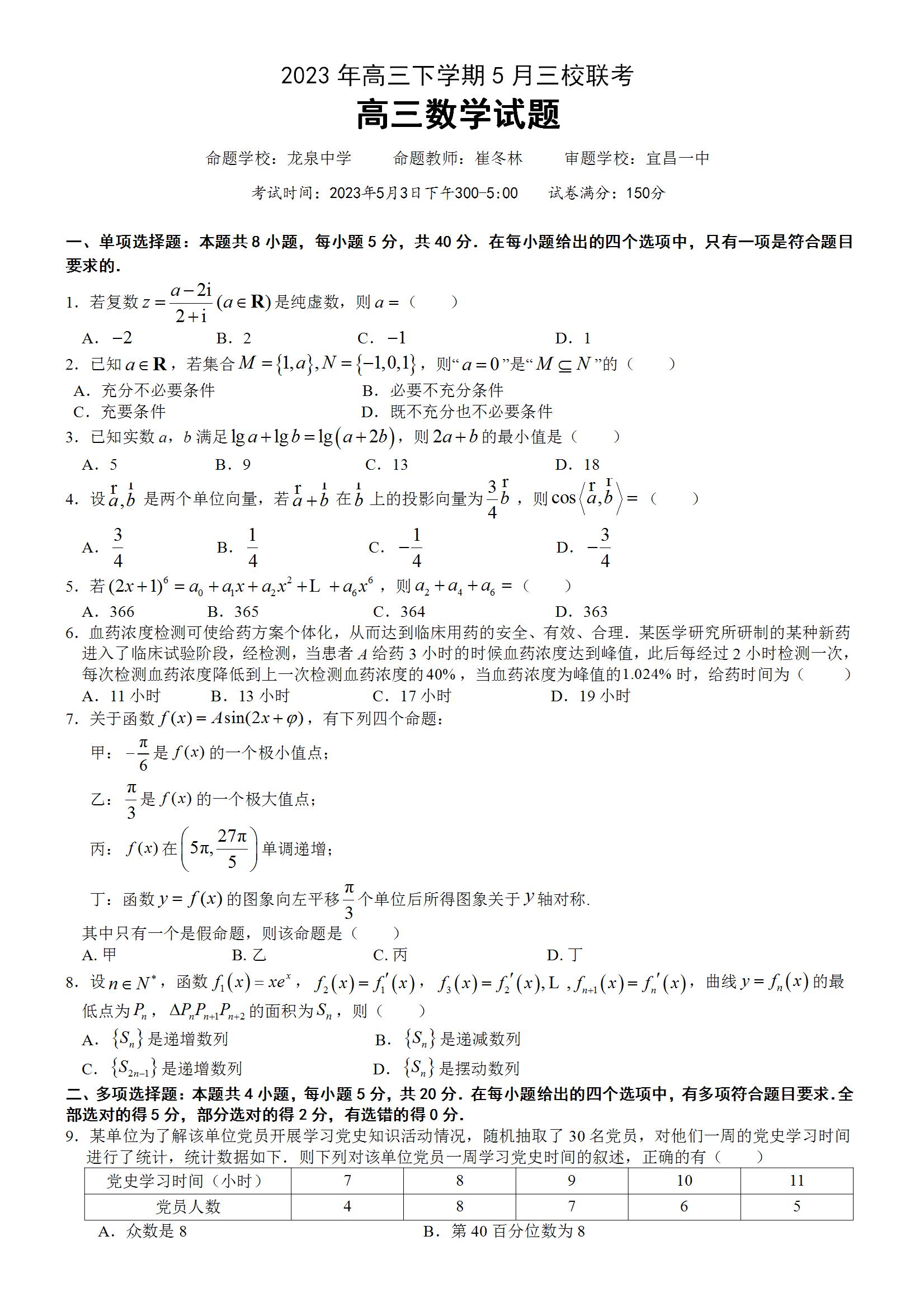 龙泉中学、荆州中学·、宜昌一中2023年高三下学期5月联考数学试题(word版含答案))