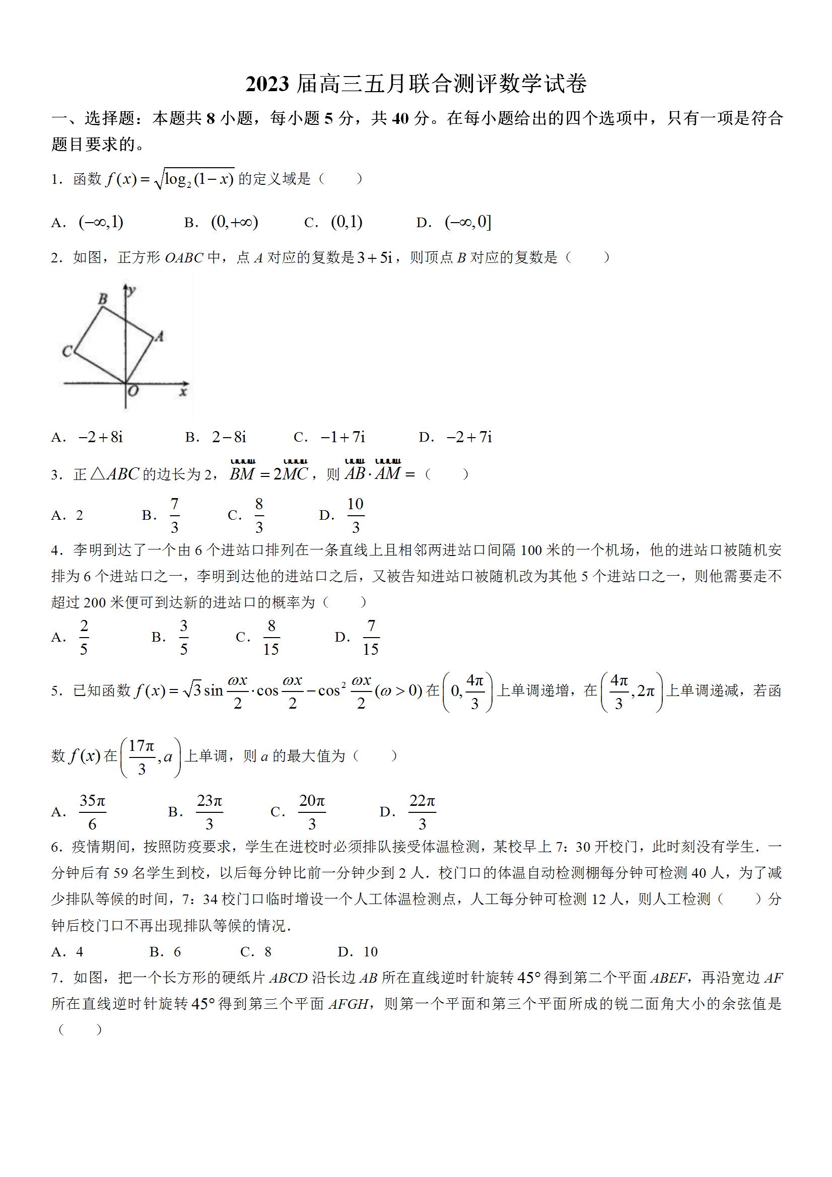 湖北圆创2023届高三5月测评数学试卷(wor版含答案)