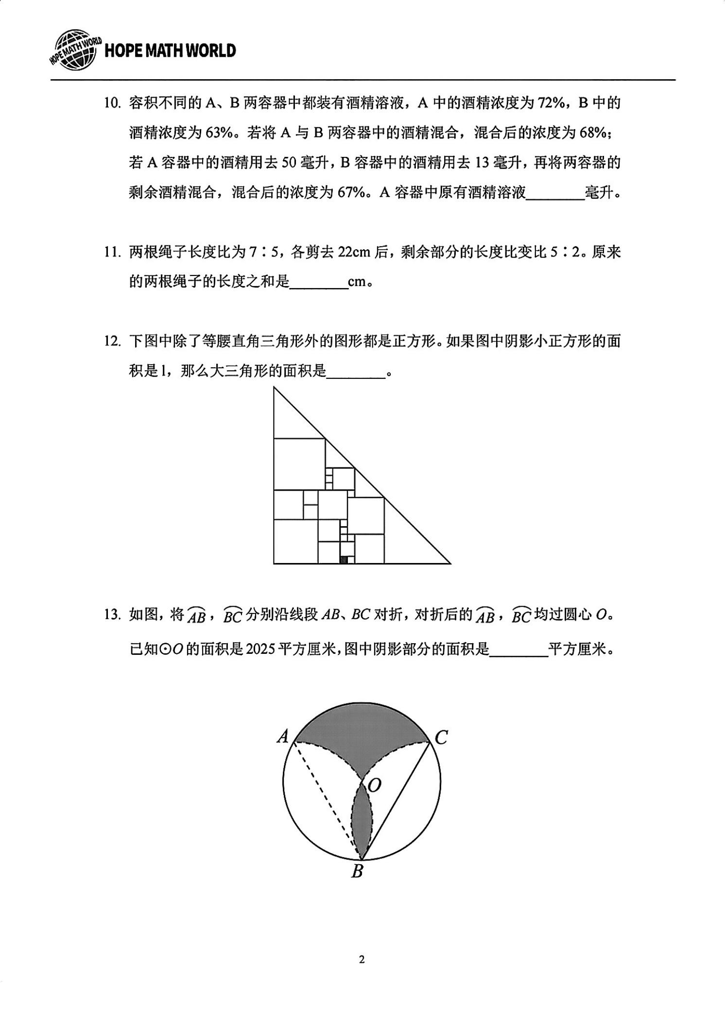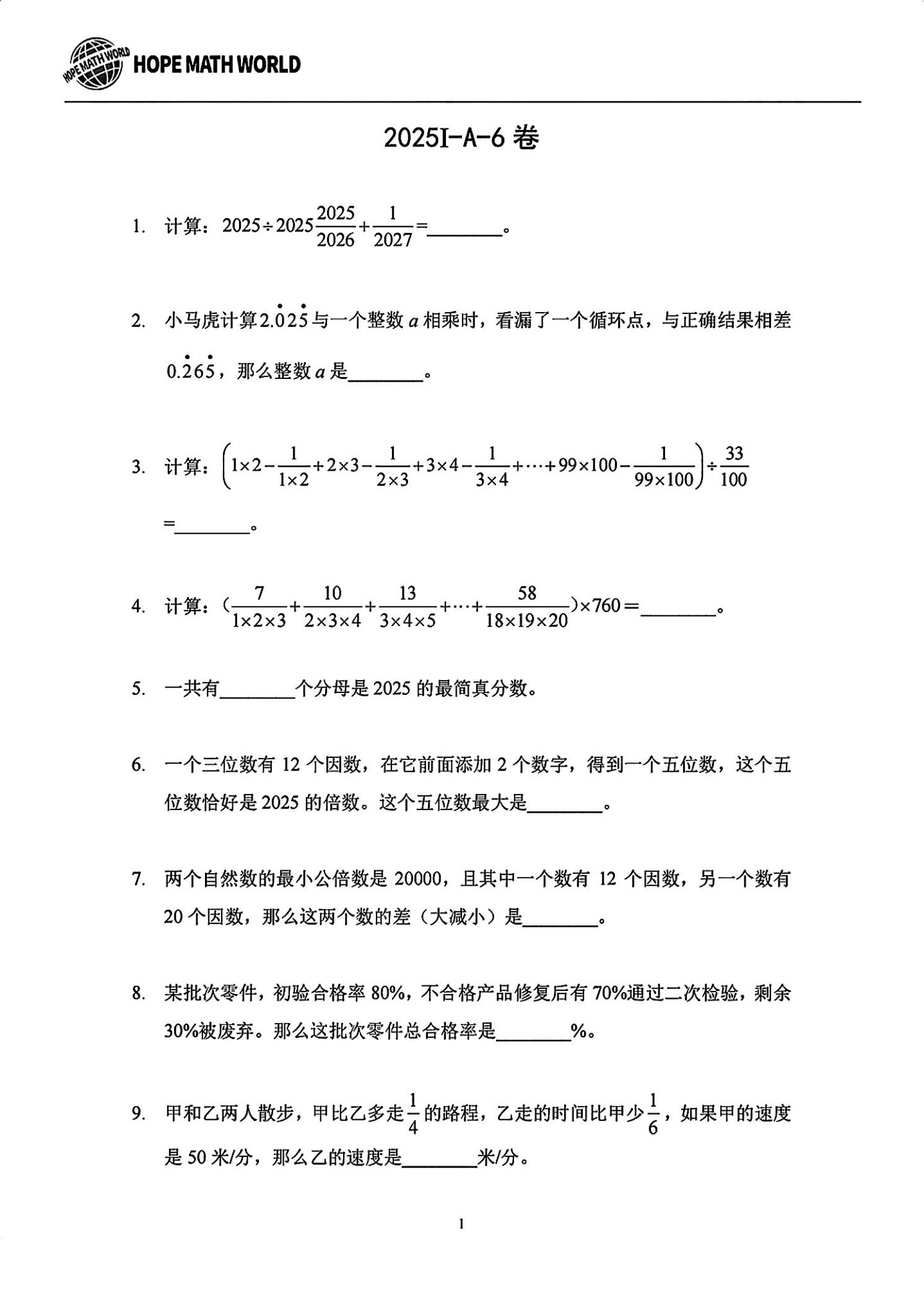 2025年希望杯六年级数学夏令营A6试题(PDF版含答案)