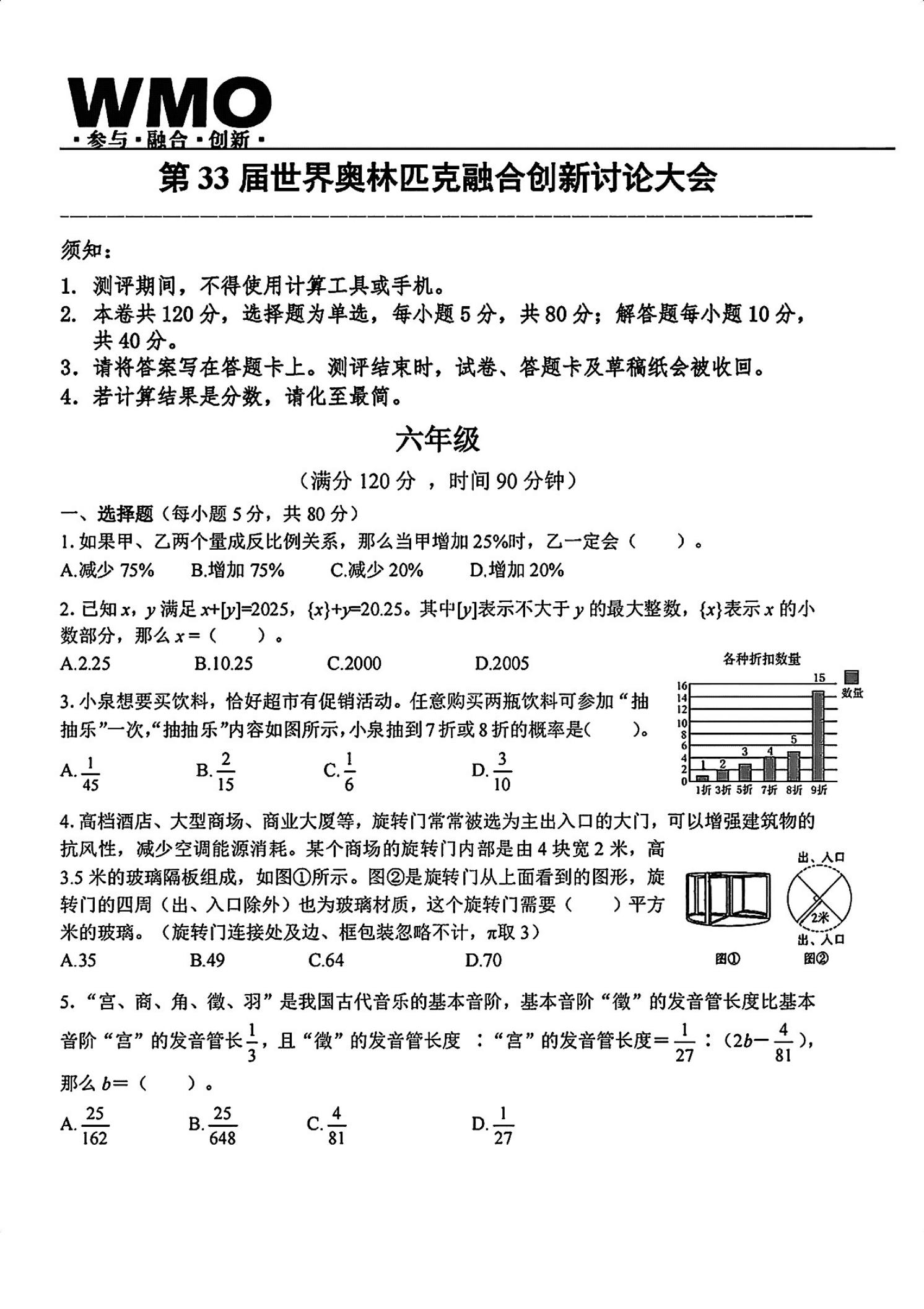 2025年第33届世奥赛六年级数学初赛试题(PDF版含答案)