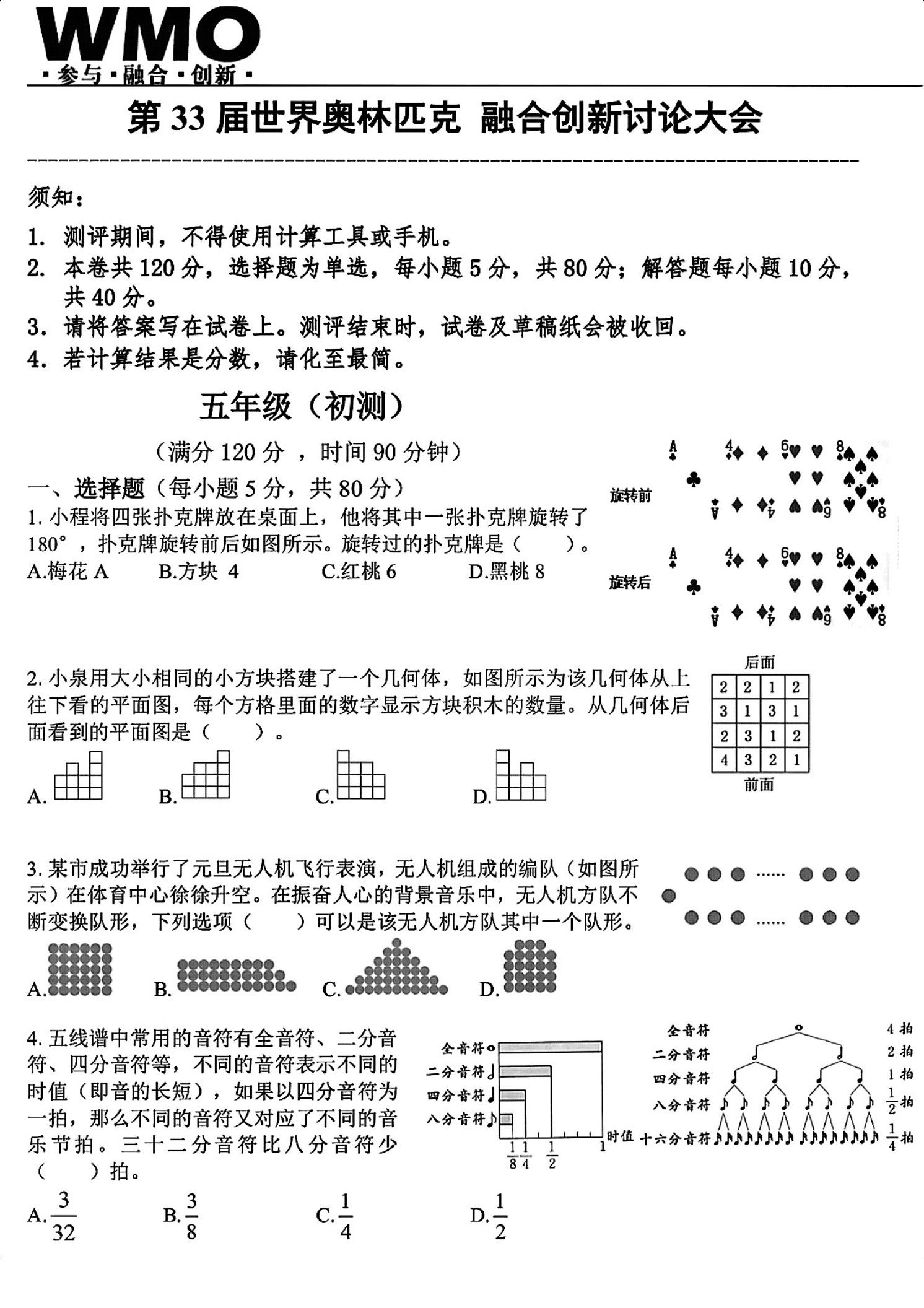 2025年第33届世奥赛五年级数学初赛试题(PDF版含答案)