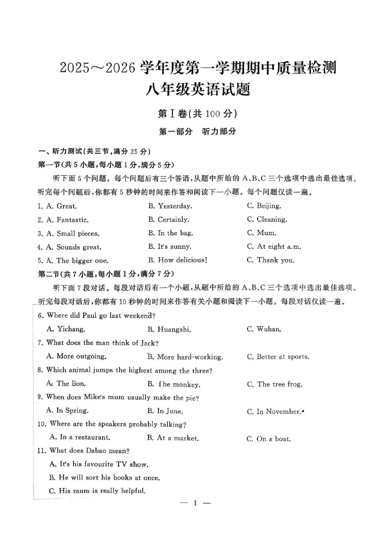 武汉市四区2025-2026学年上学期期中联考八年级英语试卷(PDF版含标答)