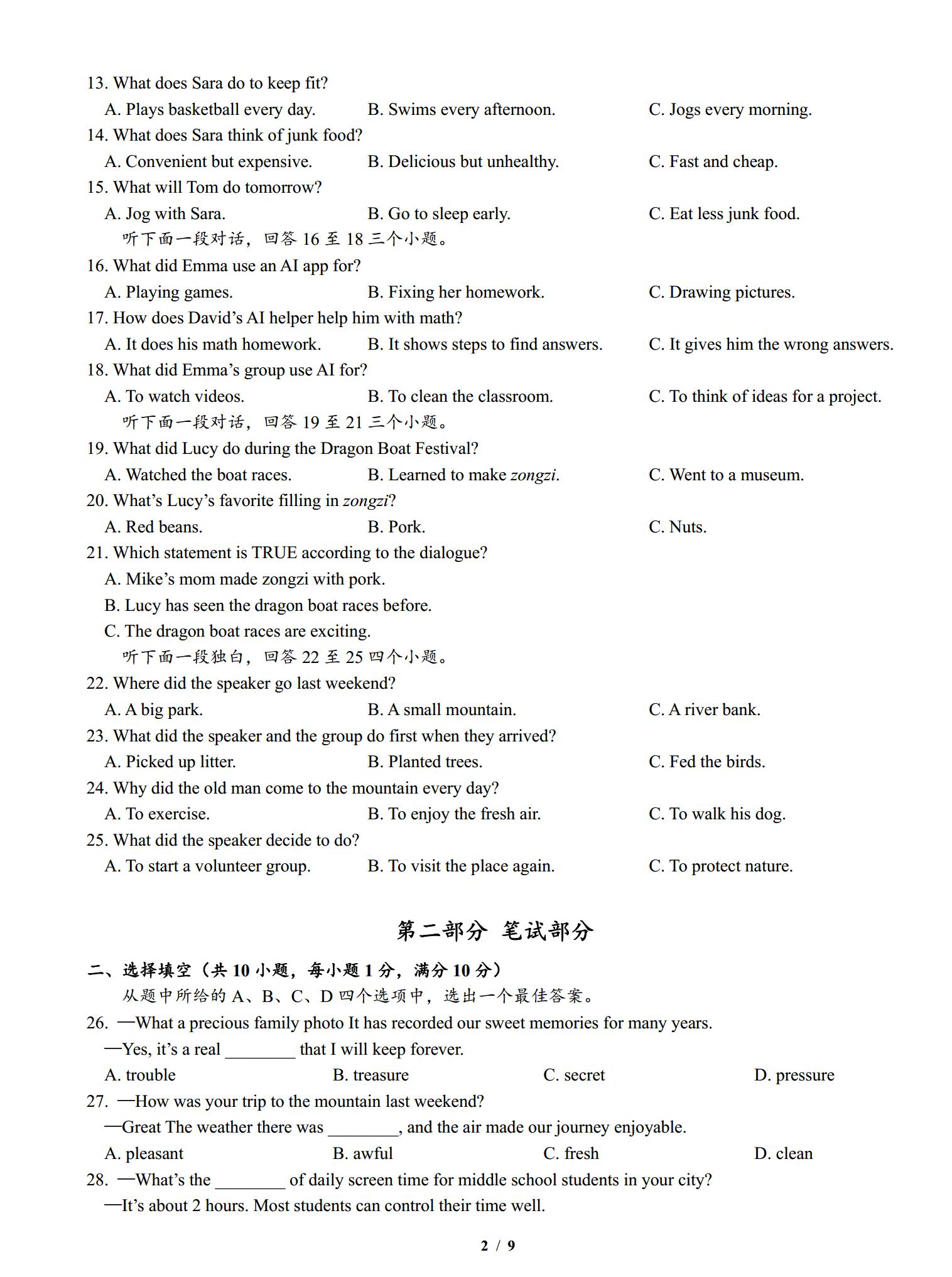 武汉梅苑学校2025-2026学年上学期10月八年级英语试题(PDF版)