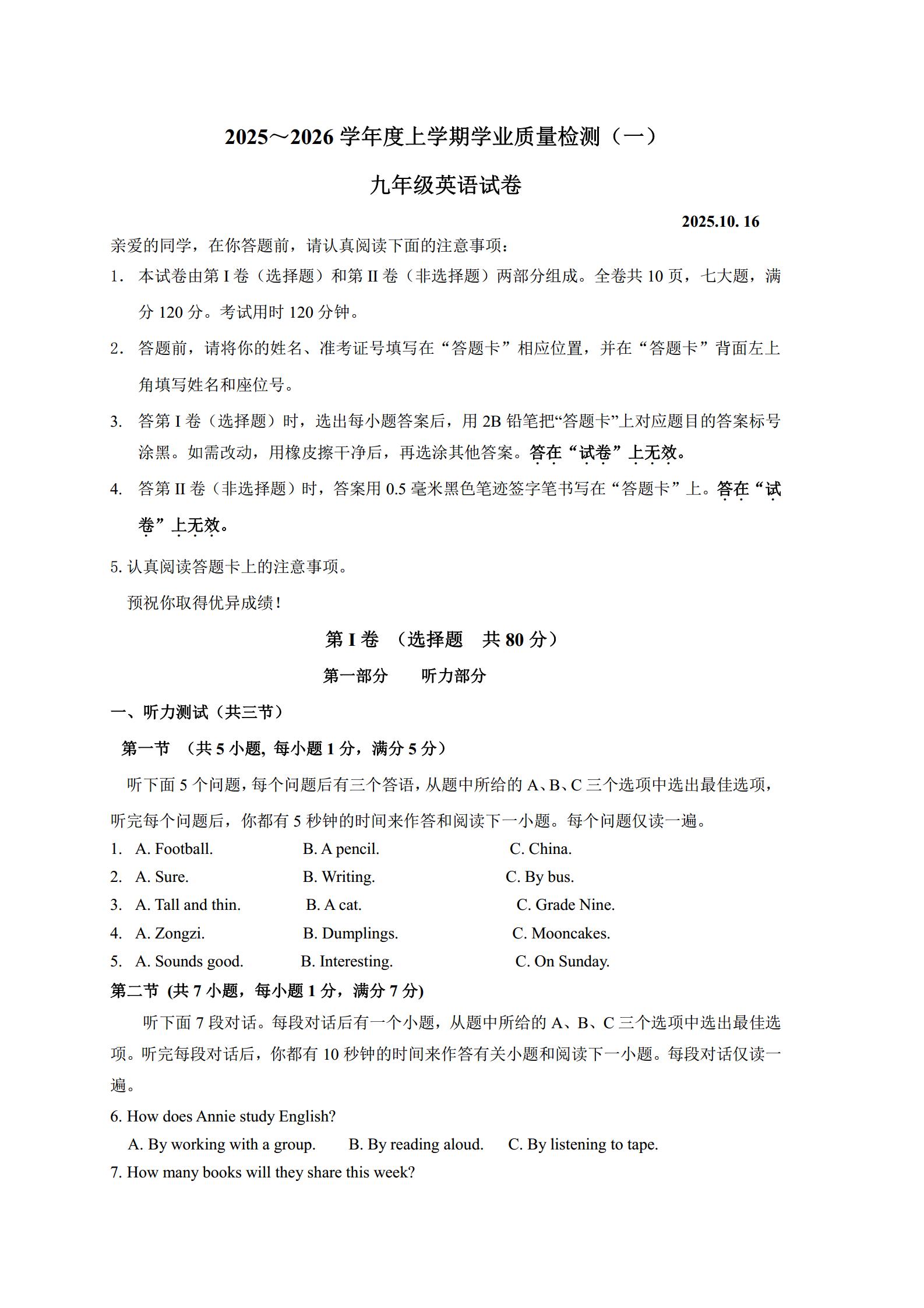 武昌区部分学校2025-2026学年上学期10月九年级英语试题(PDF版)