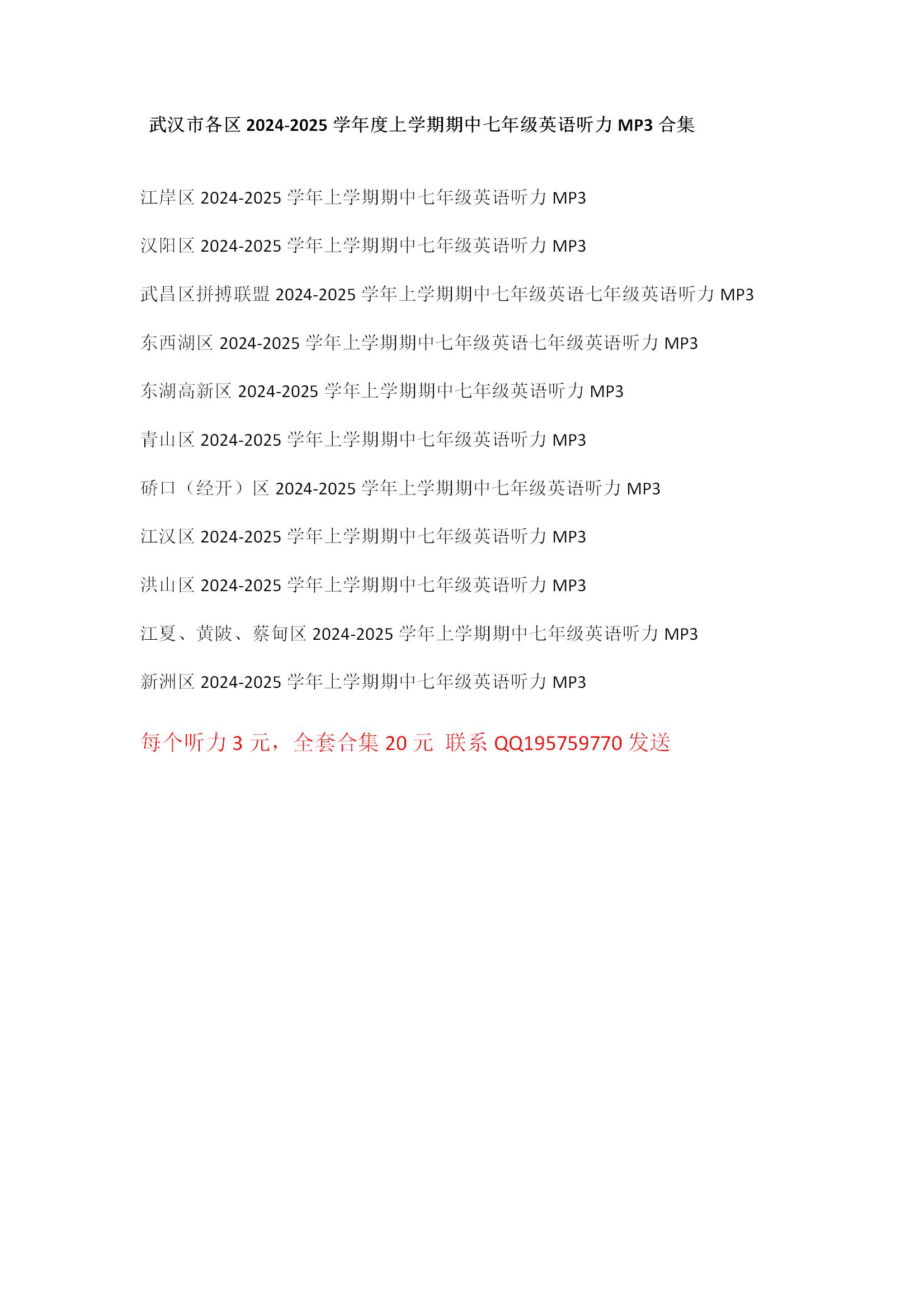 武汉市各区2024-2025学年度上学期期中七年级英语听力MP3合集