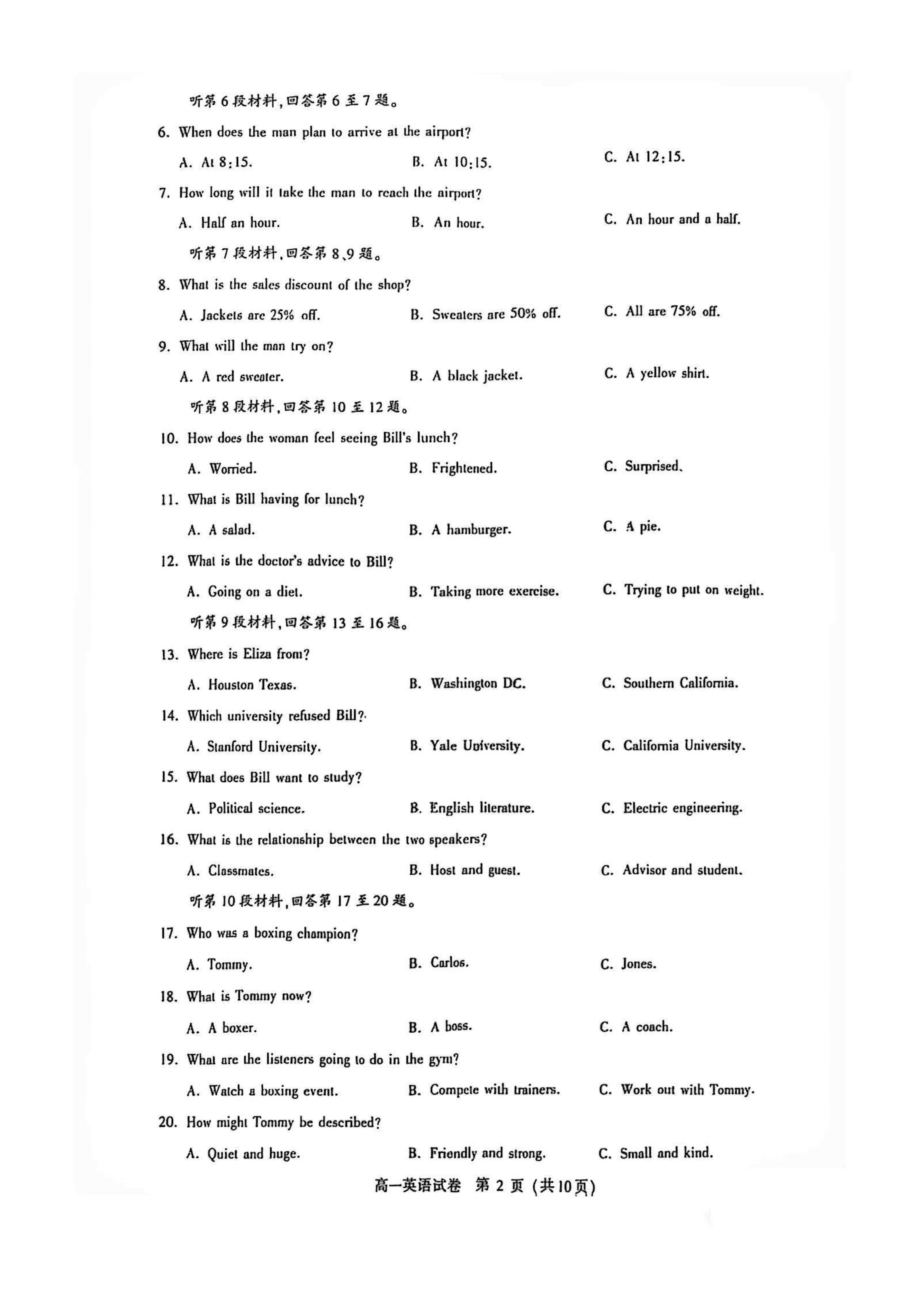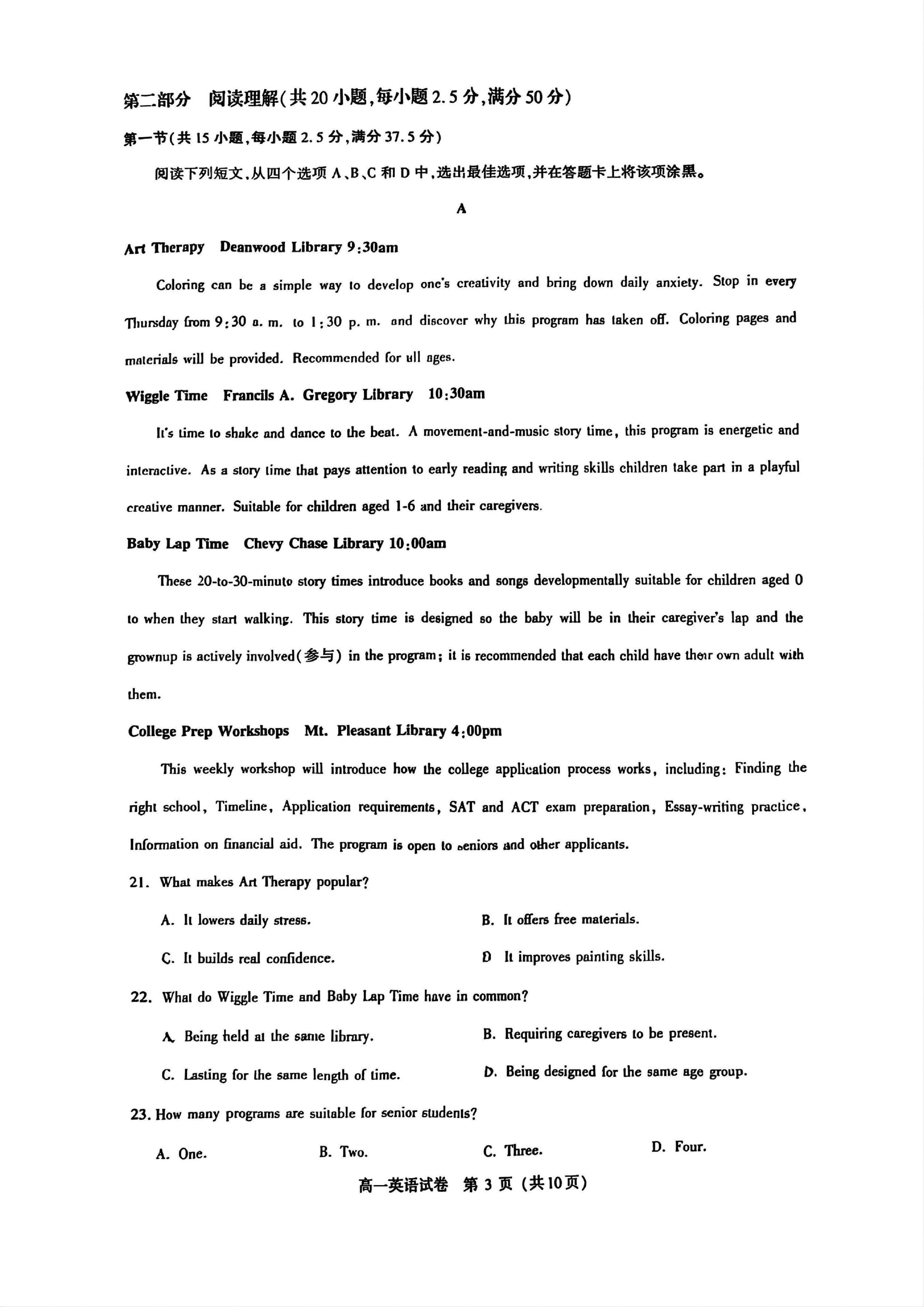 高一英语期末
