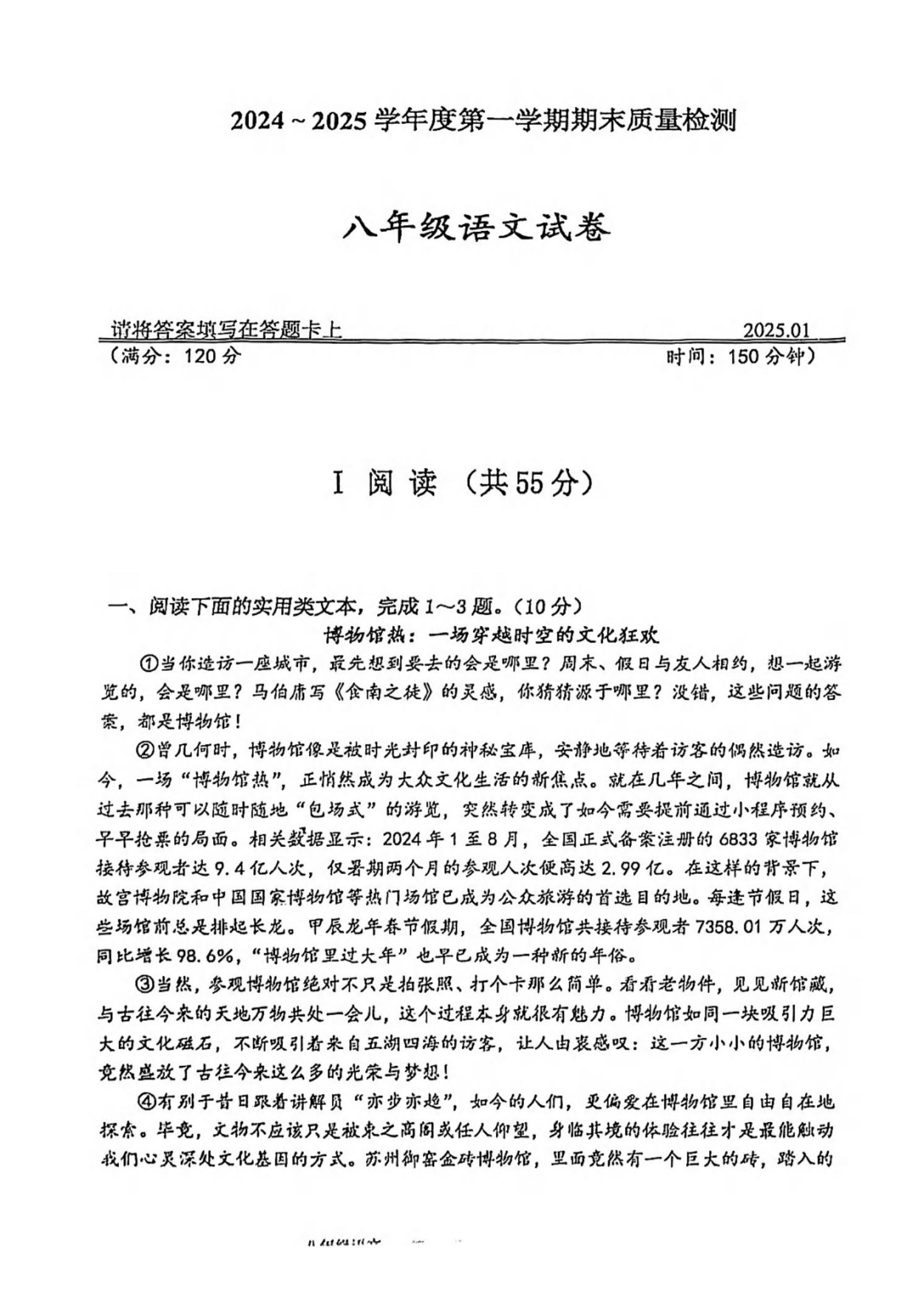 汉阳区2024-2025学年上学期期末八年级语文试卷(PDF版)