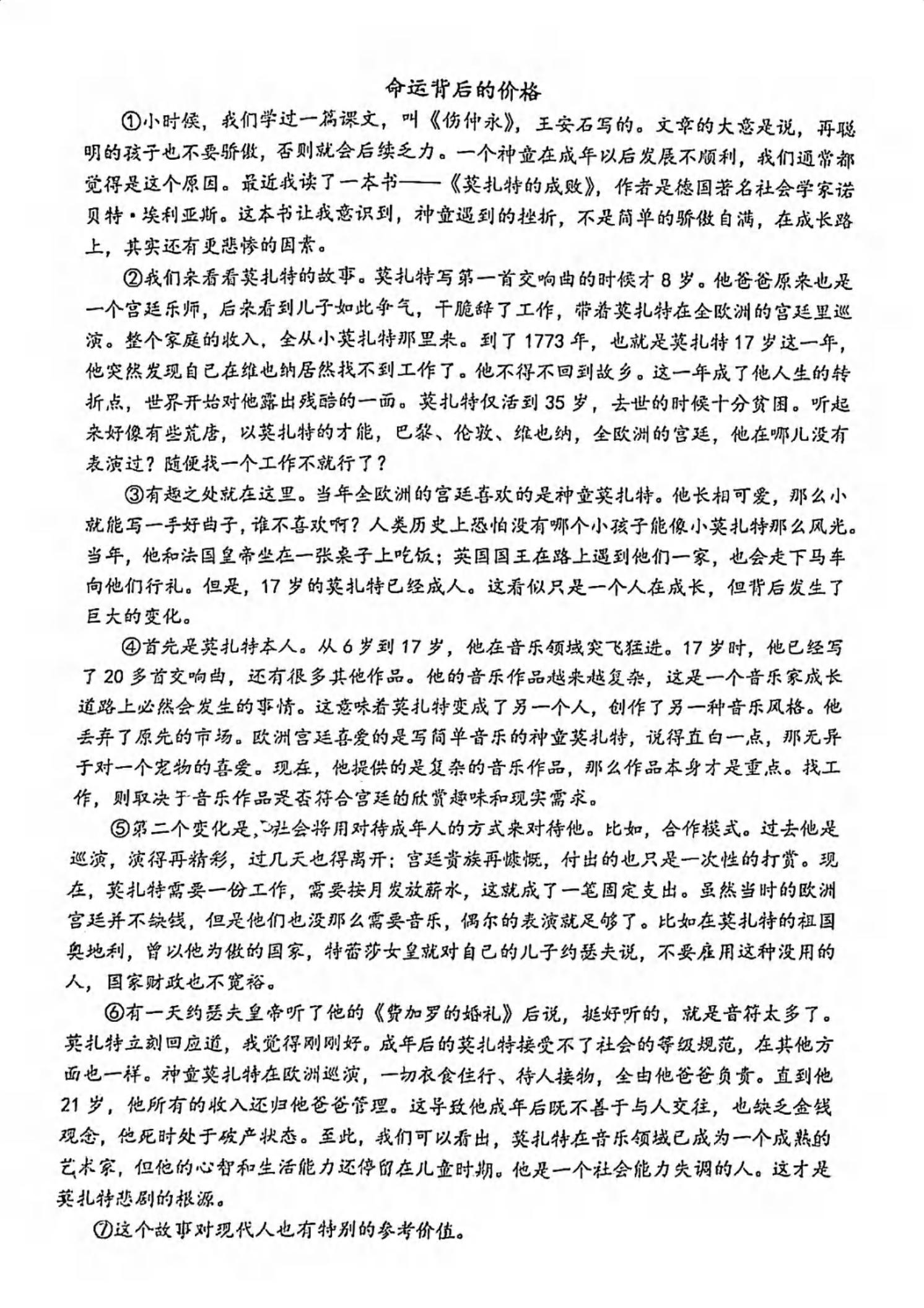 青山区2024-2025学年上学期期末八年级语文试卷(PDF版含标答)