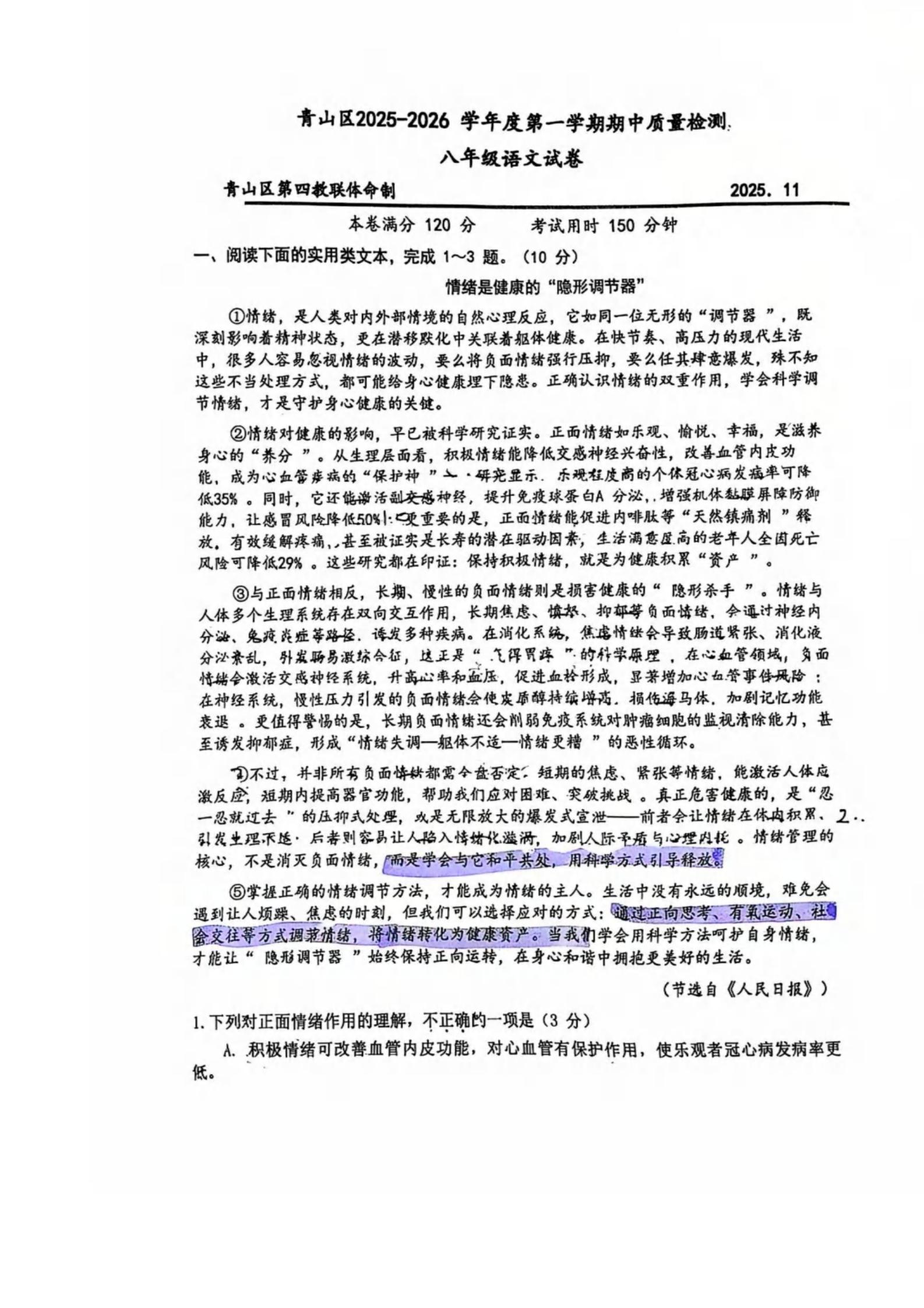 青山区钢实教联体2025-2026学年八上期中语文试卷(PDF版)