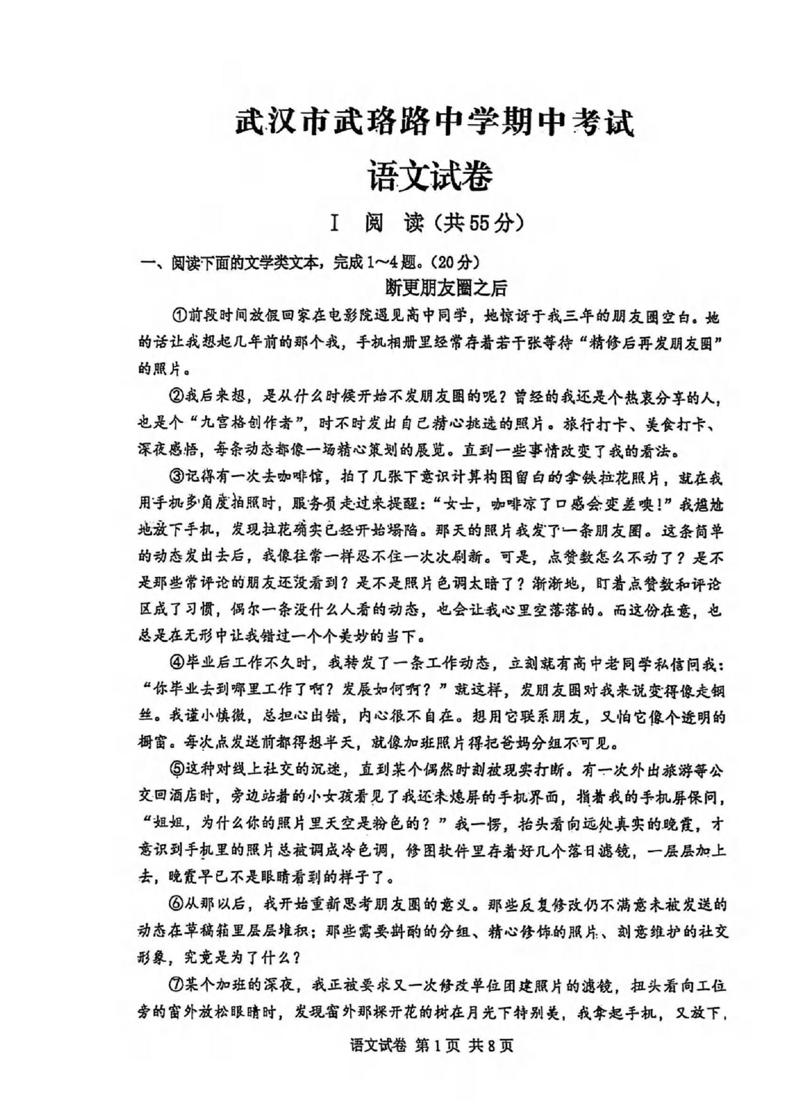 武昌区武珞路中学2025-2026学年上学期期中九年级语文试题(PDF版含标答)