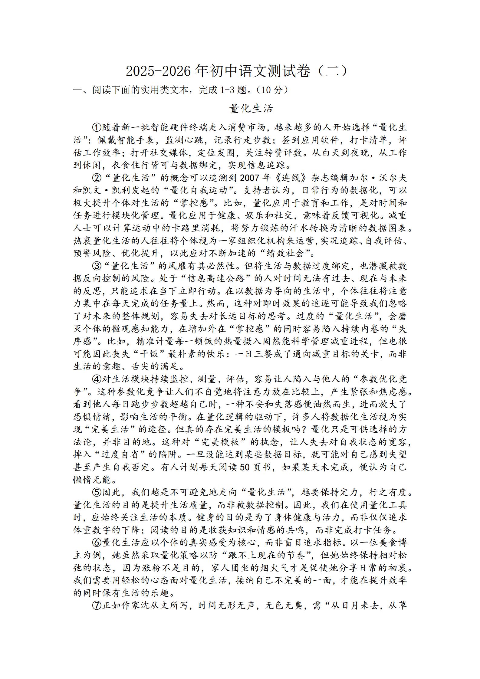 武汉市2025-2026学年九上语文月考试卷(二)(PDF版含答案)